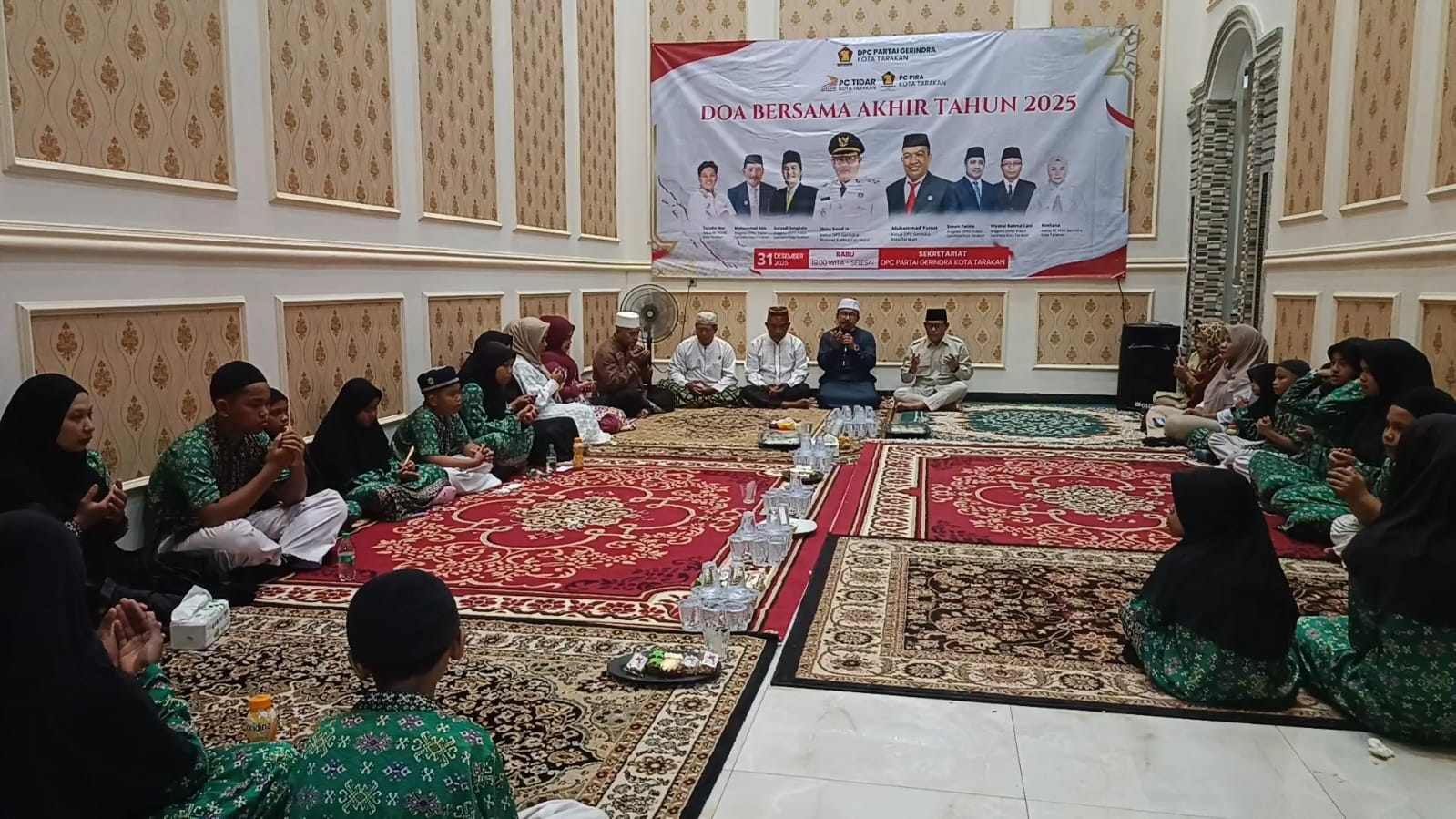 NRT, Tarakan : Dewan Pimpinan Cabang (DPC) Partai Gerindra Kota Tarakan menutup tahun 2025 dengan khidmat melalui gelaran doa bersama yang melibatkan puluhan anak yatim piatu dan warga sekitar.