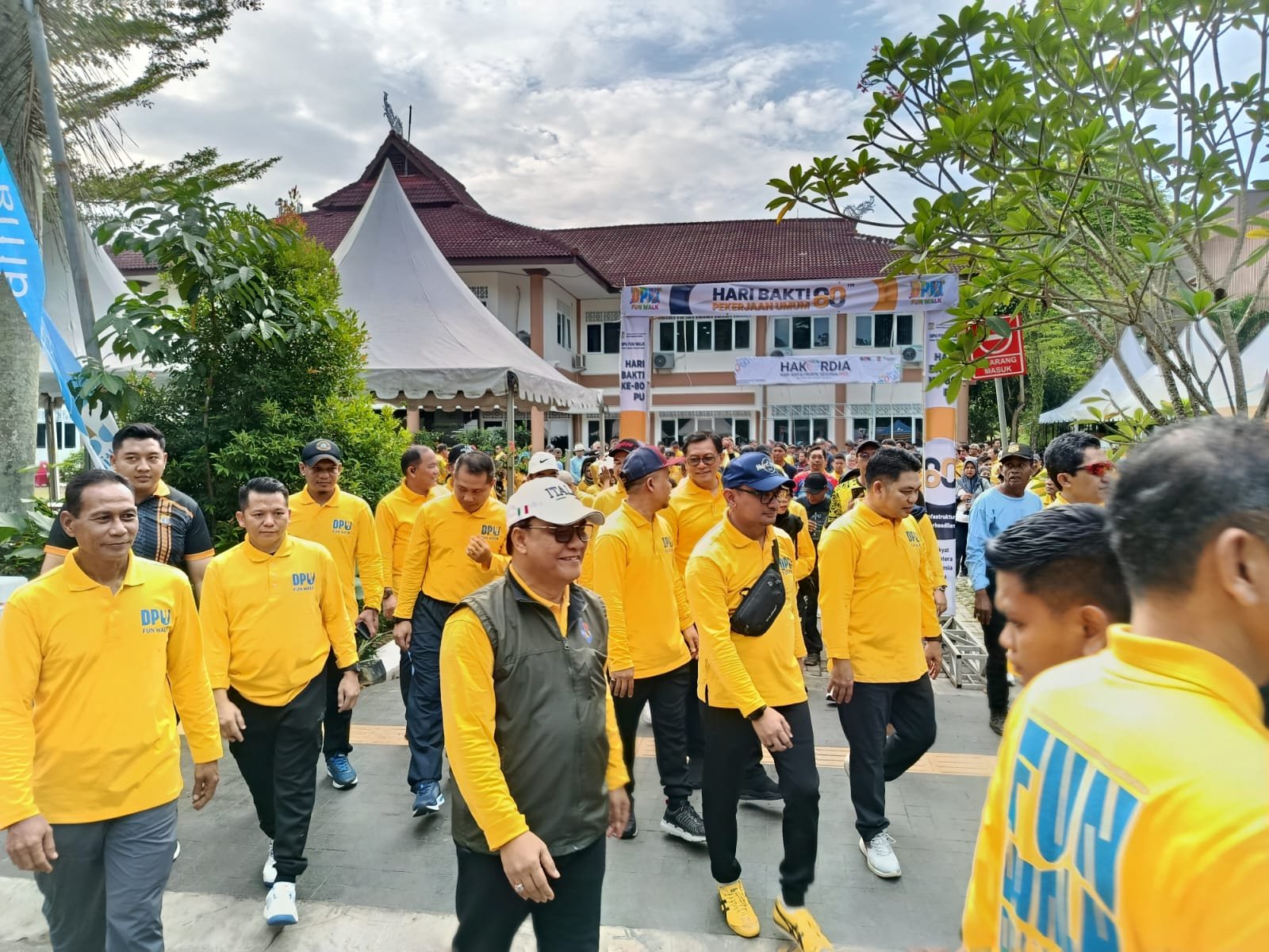 NRT, Balikpapan : Dalam rangka memperingati Hari Bakti Pekerjaan Umum ke-80, Dinas Pekerjaan Umum (DPU) Kota Balikpapan menggelar kegiatan Fun Walk yang dipusatkan di halaman Dinas Perumahan dan Permukiman serta halaman DPU, Sabtu pagi (5/12/2025). Ratusan peserta, mulai dari pegawai hingga keluarga besar insan Pekerjaan Umum, hadir mengikuti jalan santai ini dengan penuh antusiasme. Suasana pagi itu menjadi semakin meriah berkat semangat kebersamaan yang terpancar dari seluruh peserta.