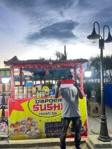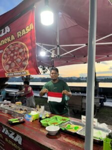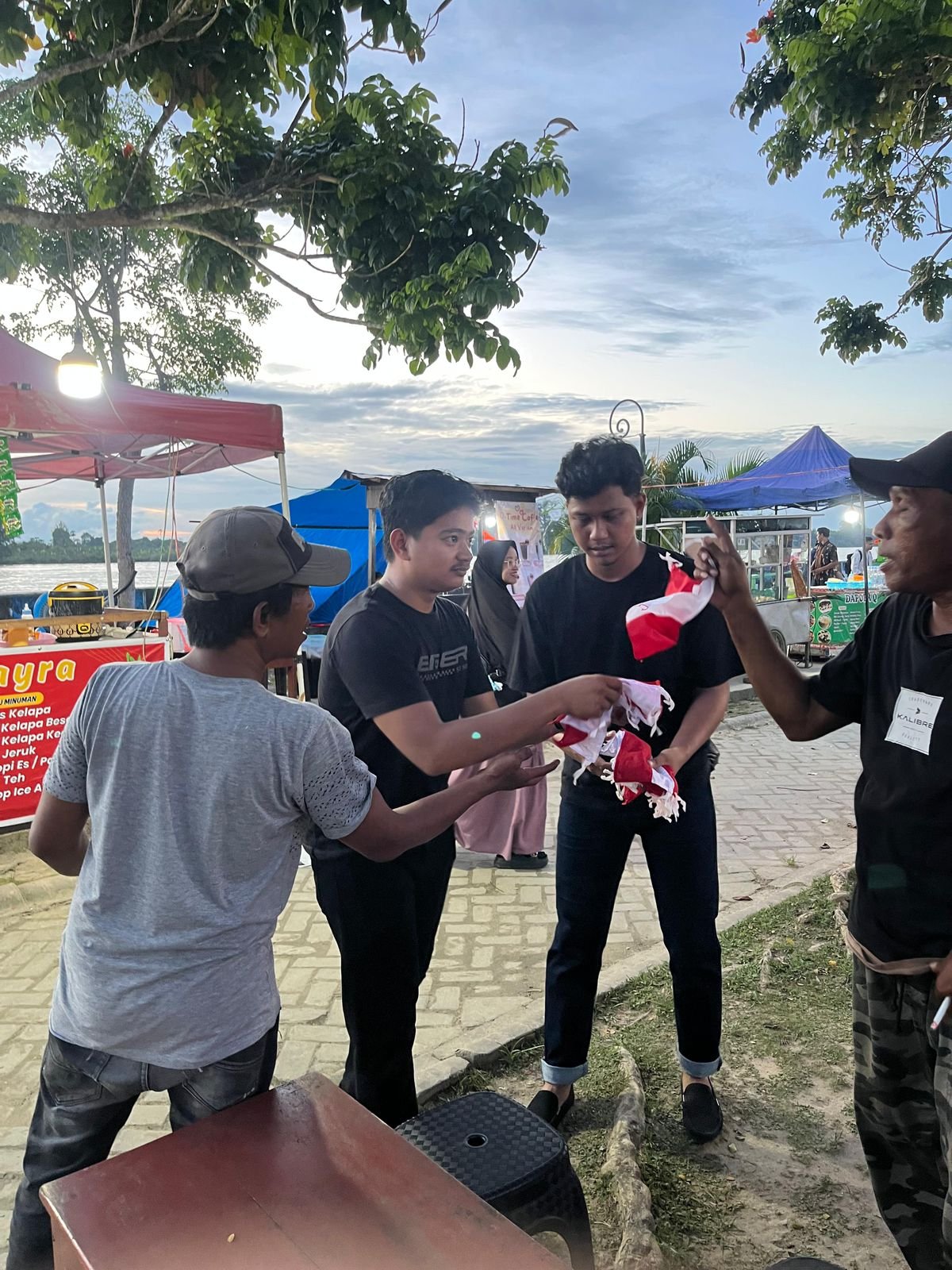 NRT, Tanjung Selor : Menjelang Hari Ulang Tahun (HUT) ke-80 Republik Indonesia, Kepolisian Daerah (Polda) Kaltara membagikan ratusan bendera Merah Putih kepada para pedagang di sepanjang Kuliner Tepi Kayan (Kulteka), Tanjung Selor, Jumat (15/8/2025).
