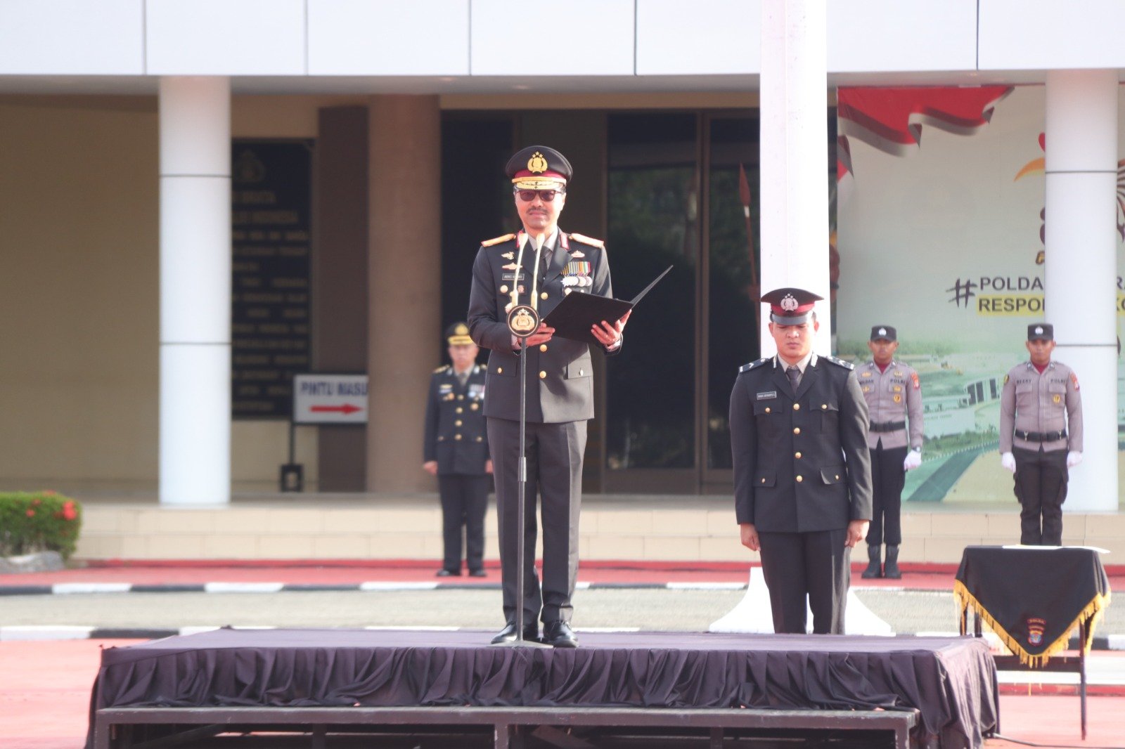 Wakapolda Kaltara Brigjen Pol. Andries Hermanto, S.I.K., S.H., M.Si., yang bertindak sebagai inspektur upacara yang diikuti oleh para Pejabat Utama, Personel, dan ASN Polda Kaltara. Rangkaian upacara diawali dengan pengibaran bendera Merah Putih, dilanjutkan dengan mengheningkan cipta untuk mengenang jasa para pahlawan, serta pembacaan teks Pancasila yang diikuti seluruh peserta dengan penuh semangat.